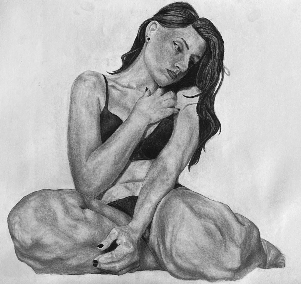 Femininity, 2025, Charcoal on Paper, 28 inches by 28 inches